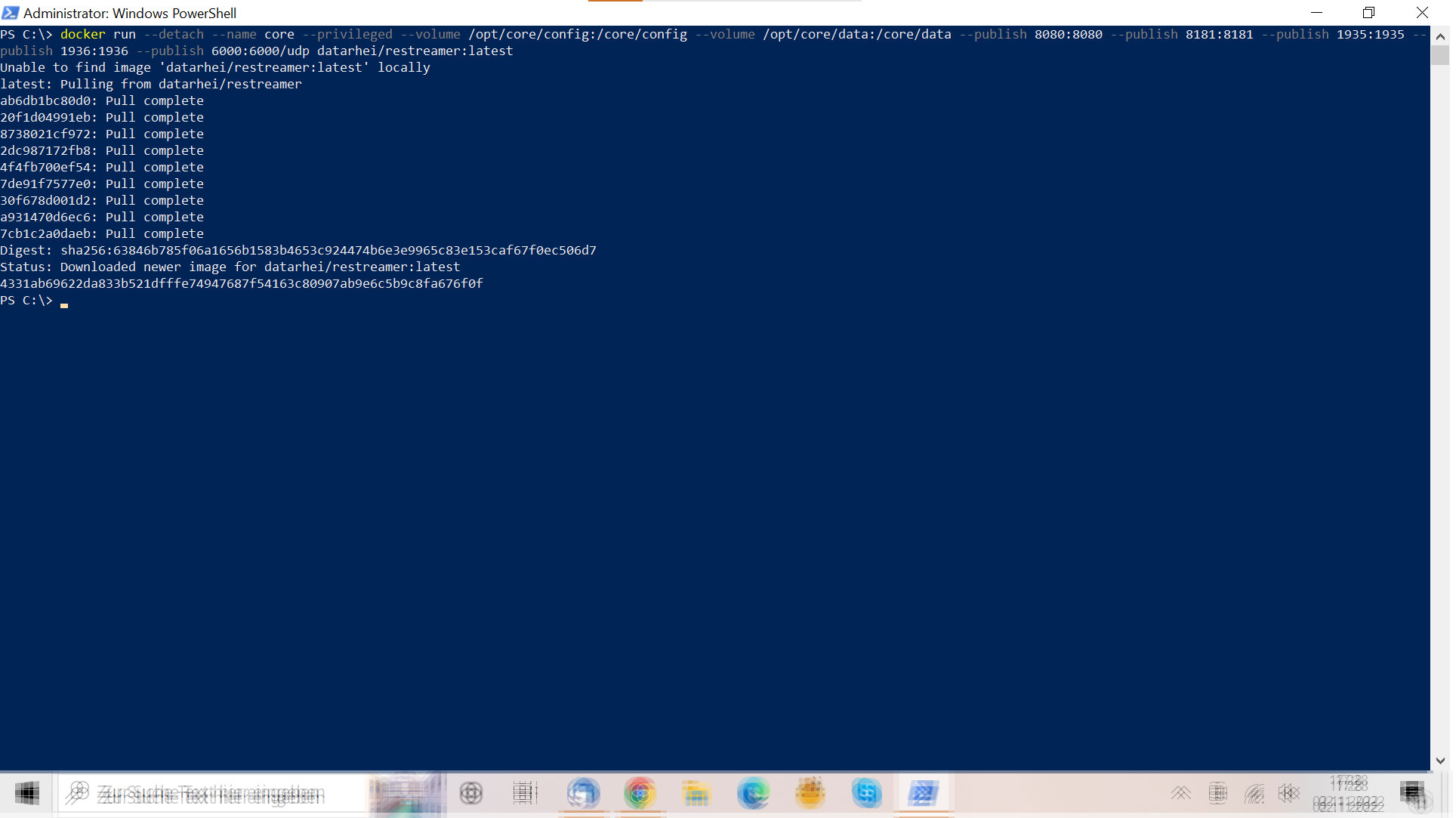 **datarhei/restreamer:latest** It is the Docker image of the latest datarhei Restreamer on Docker Hub. Docker checks if the image is available locally and downloads it if it is not or if a newer image is available.